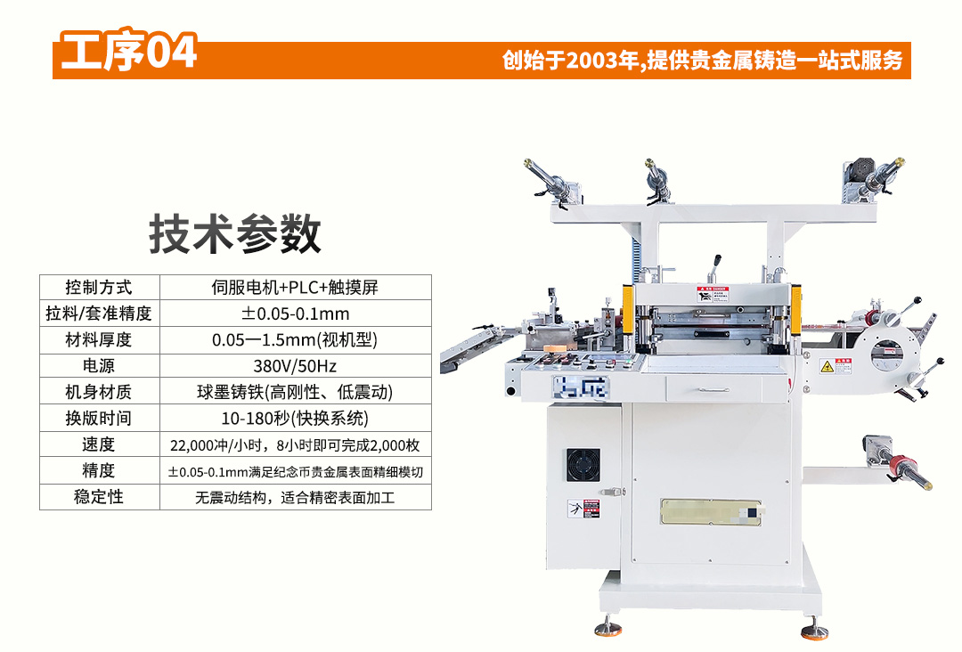 2、精度高,厚薄一致性好:厚度公差小,适合贵金属、精密薄片量产。