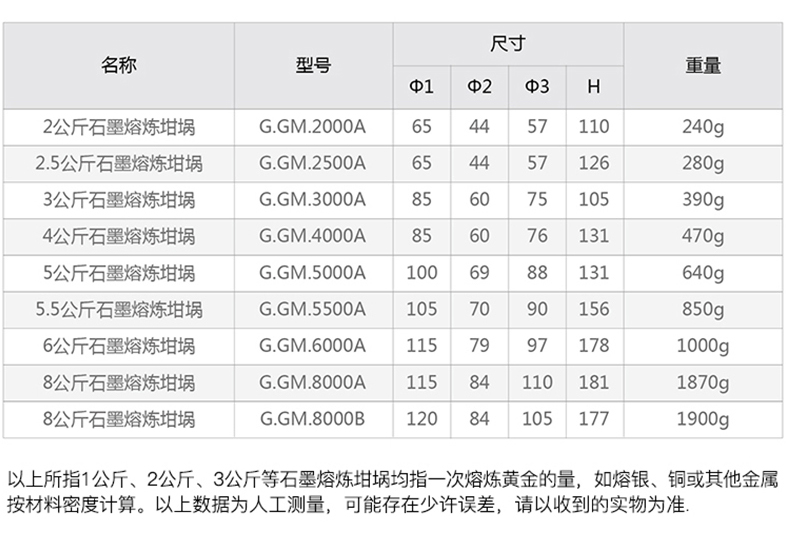 名称 | 型号 | 电压 | 功率 | 最高温度 | 熔金时间 | 尺寸 | 重量 |
