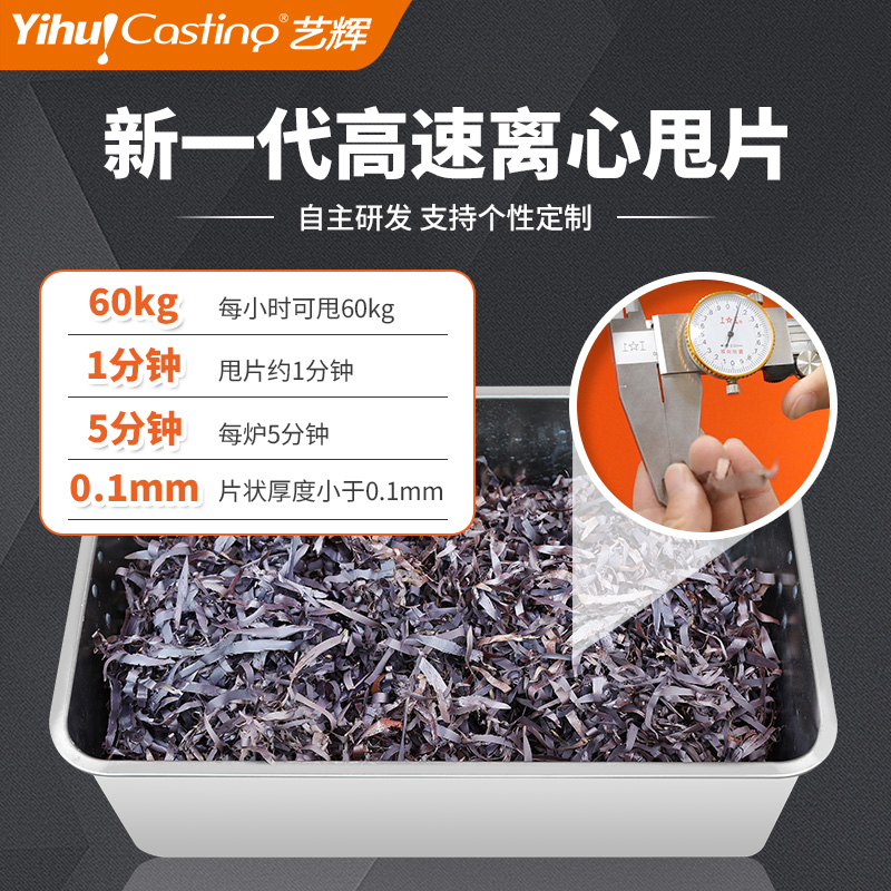 2、甩片效率高,每小时可甩60Kg,每炉5分钟,甩片约1分钟。