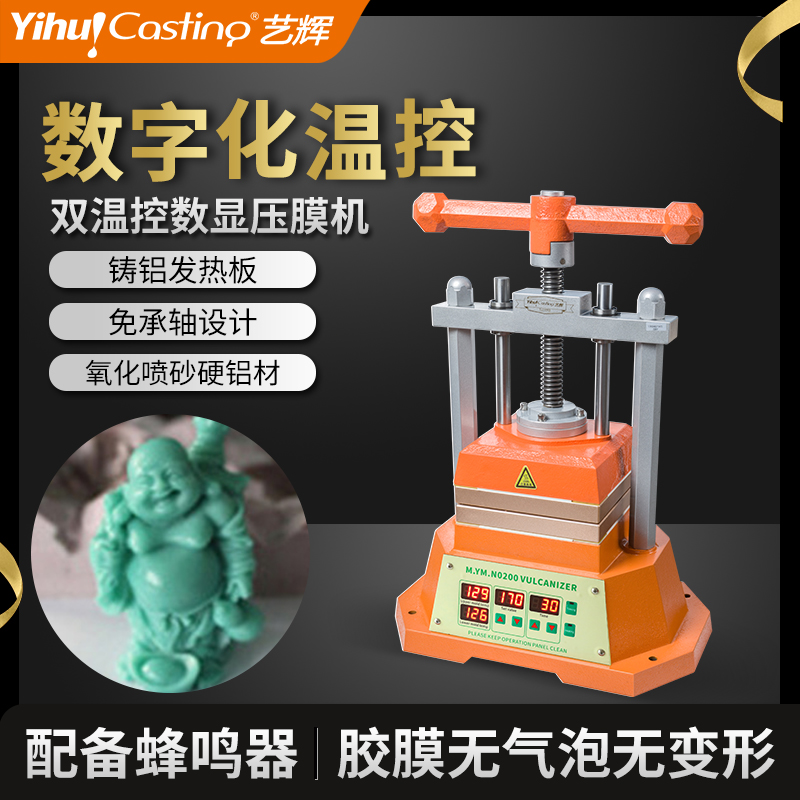 采用加厚铸铝发热板,全氧化喷砂处理,螺纹调值压模,强度更好,更耐用;上下发热板独立数字化温控,触屏式功能设定,让胶膜硫化时温度更准确。