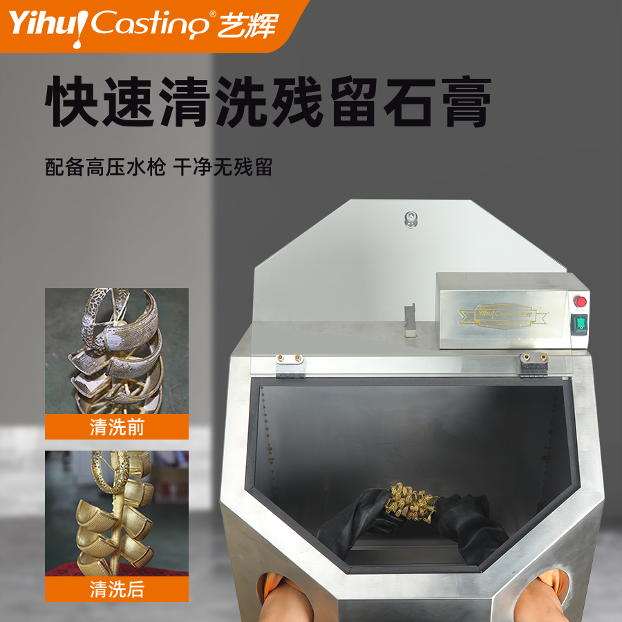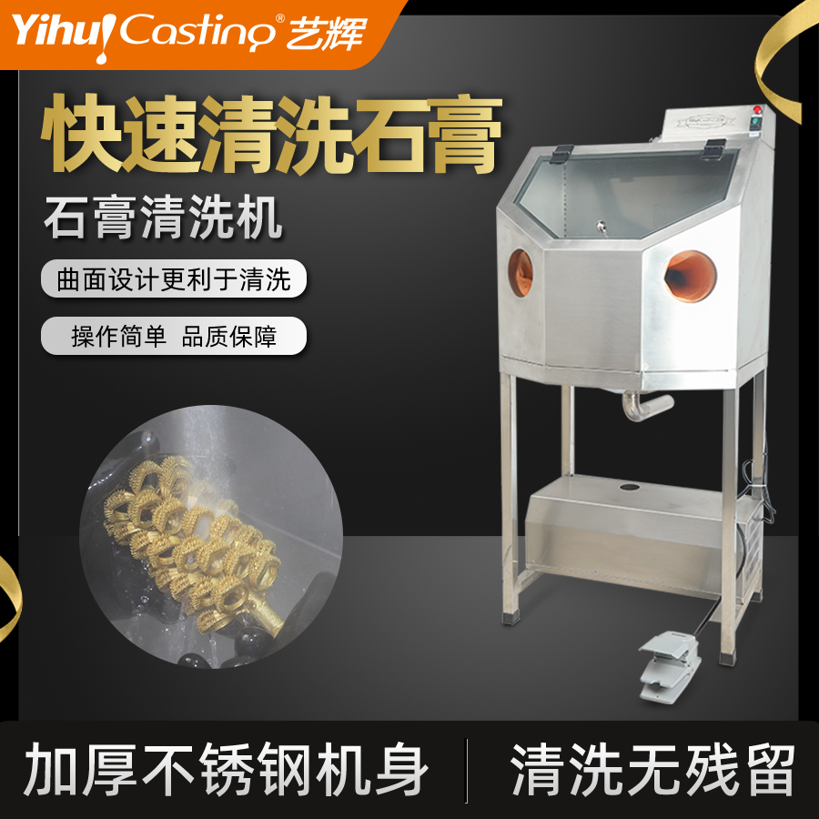 不锈钢机身,亚克力高透视大窗口,清洗效果一目了然,内置高压清洗喷嘴,通过脚踏操控,能快速有效清除铸件上残留的石膏粉。具有加工范围广,清洗更干净、节能,操作简单等。